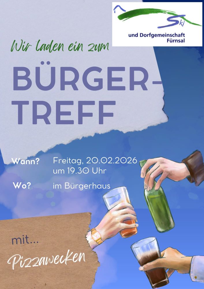 Jeweils ab 19:30 Uhr im Bürgerhaus Fürnsal bzw. bei schönem Wetter auf dem Dorfplatz. Ausnahmen sind entsprechend gekennzeichnet.